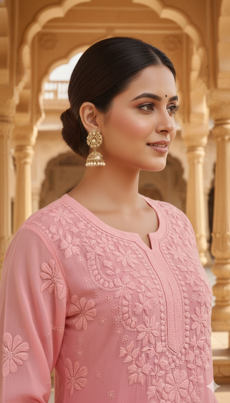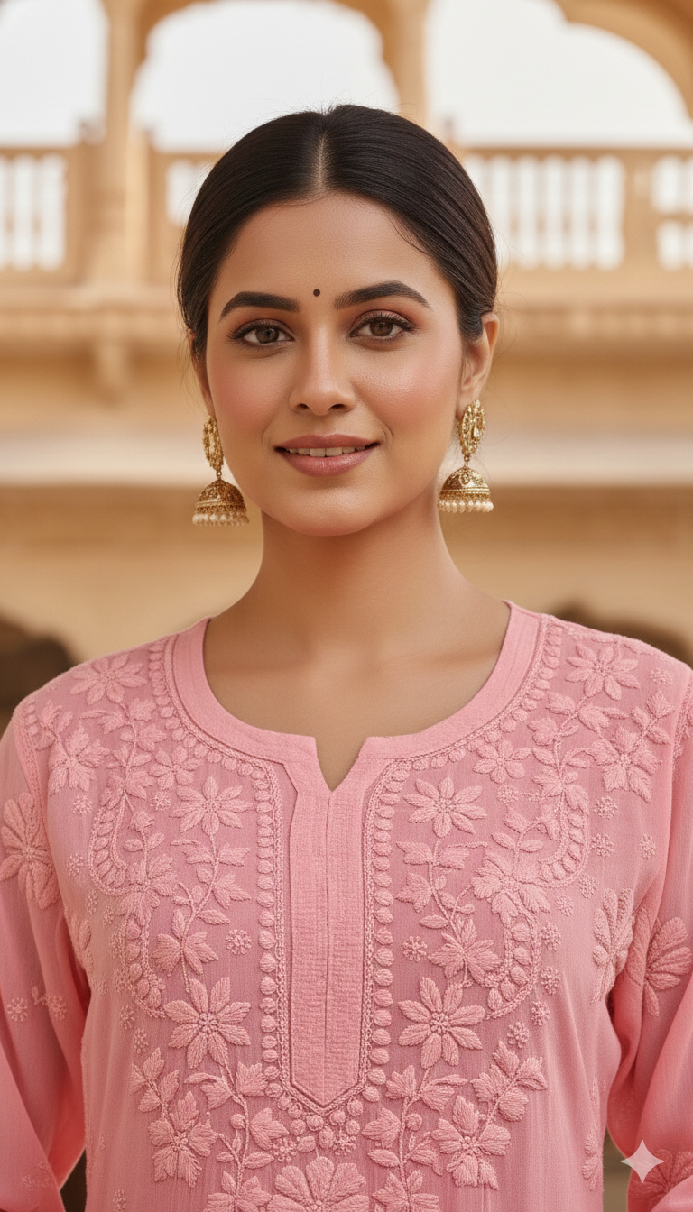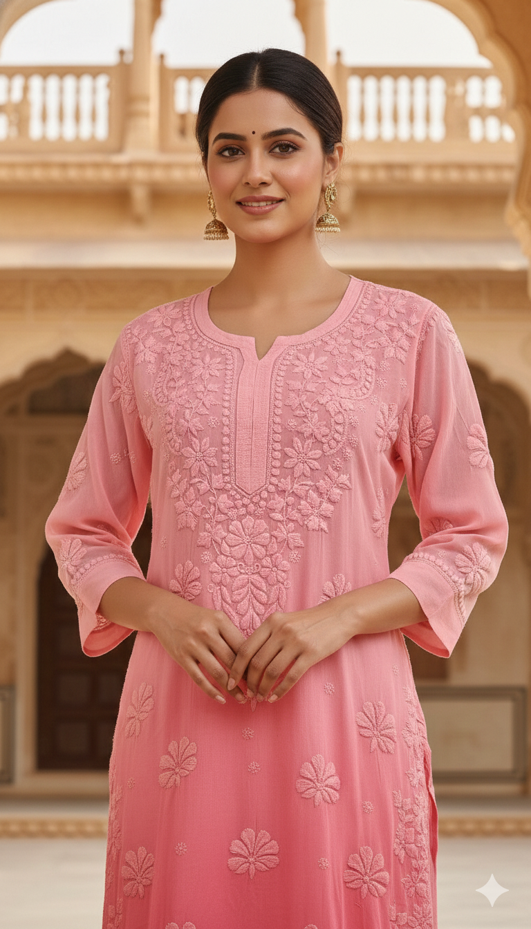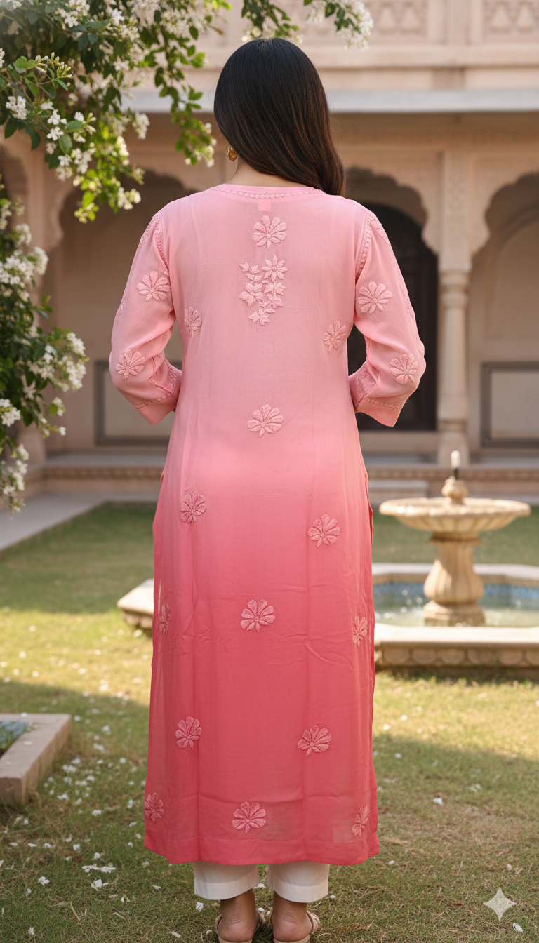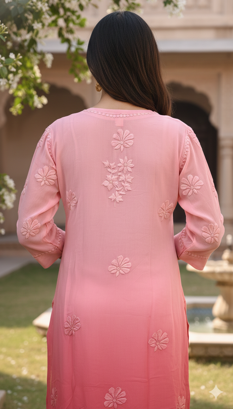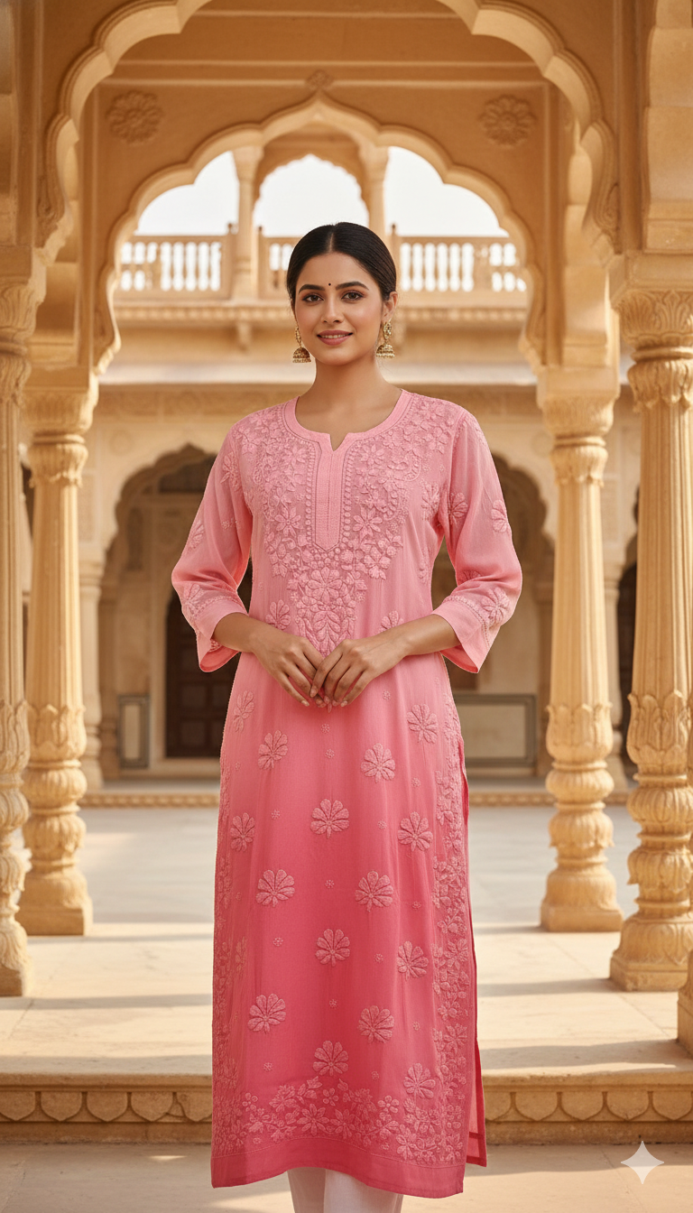 Experience timeless elegance with our Viscose Chikankari Long Pink Colour Kurta, crafted to celebrate the beauty of traditional Lucknowi craftsmanship. Made from premium-quality viscose fabric, this kurta offers a luxuriously soft feel, excellent breathability, and a graceful fall that enhances your silhouette throughout the day.
