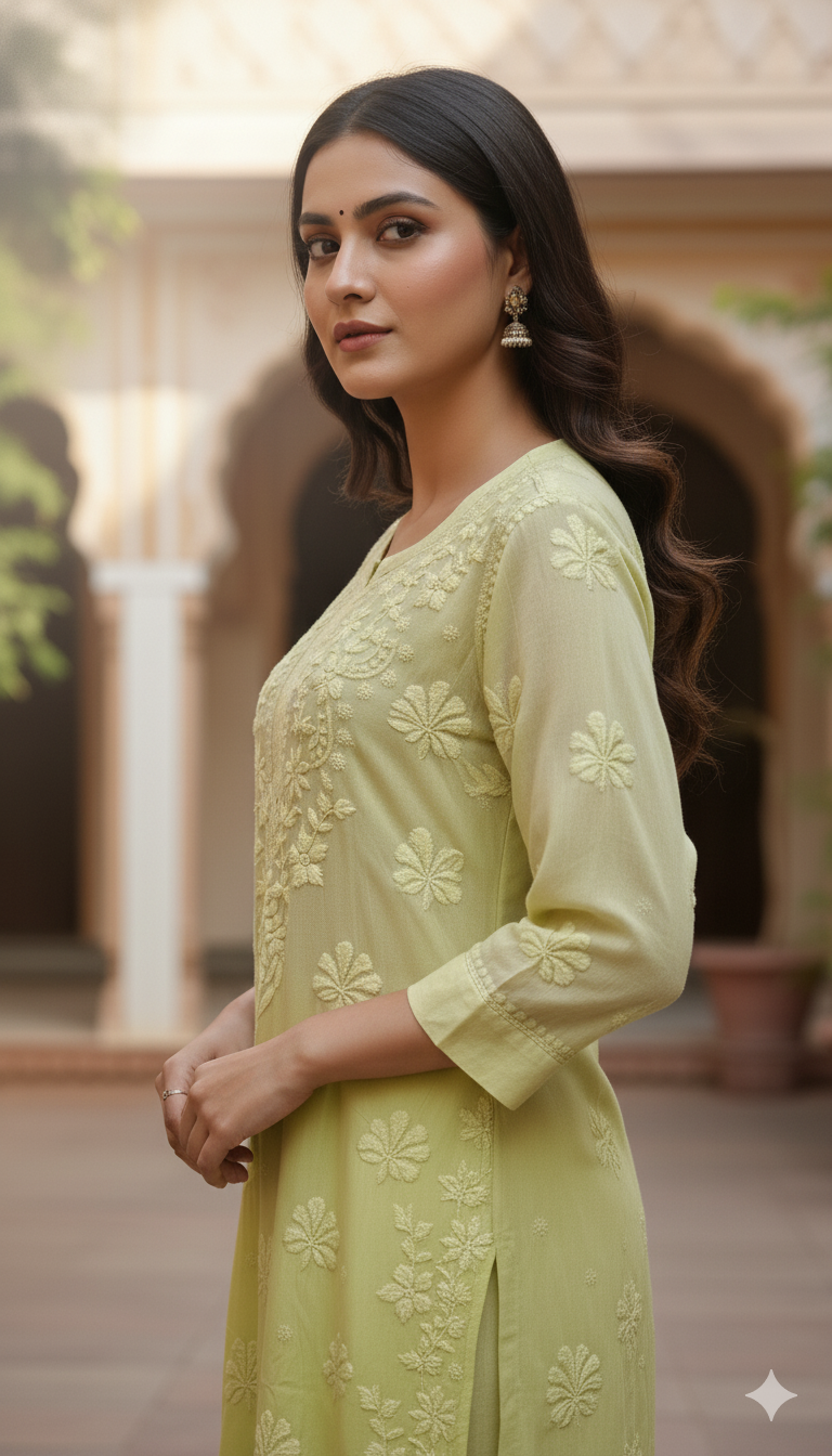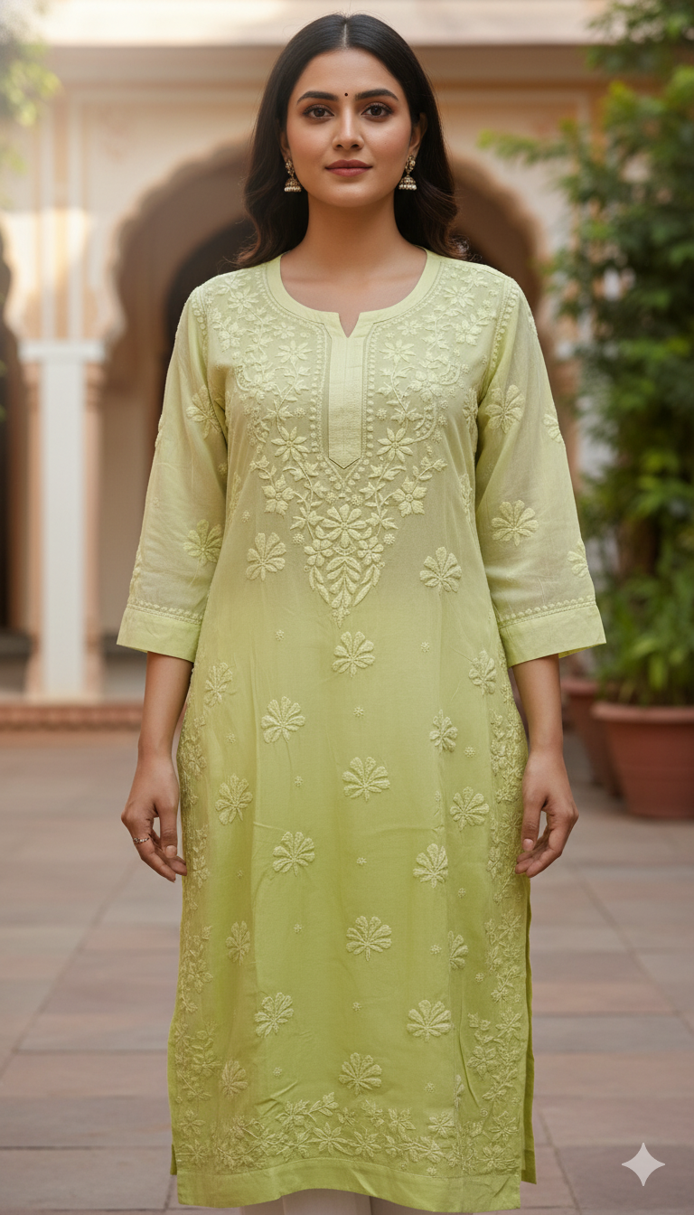 Designed in a long, straight-fit silhouette, this viscose Chikankari kurta for women ensures comfort without compromising on style. The lightweight fabric makes it ideal for all seasons—keeping you cool in summer and comfortable in mild weather. Whether styled with leggings, palazzos, or churidars, this kurta effortlessly enhances your ethnic wardrobe.